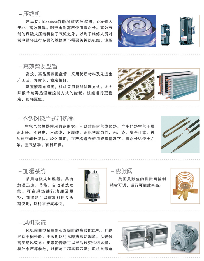 怡可信風冷單元式恒溫恒濕空調機組特點: